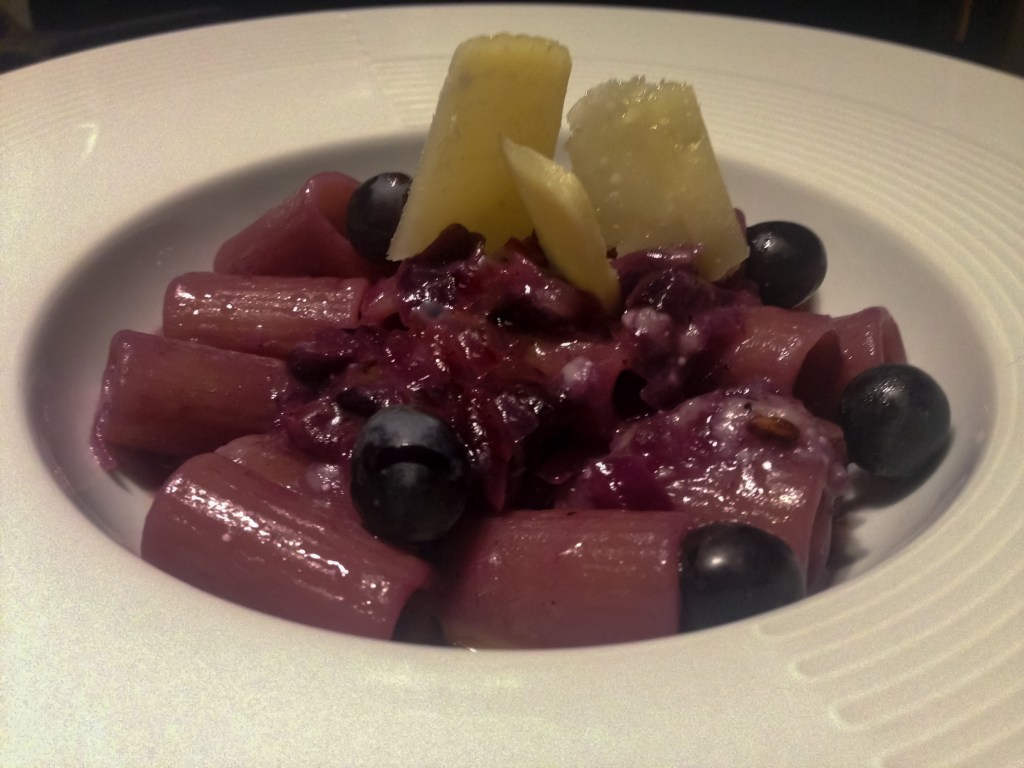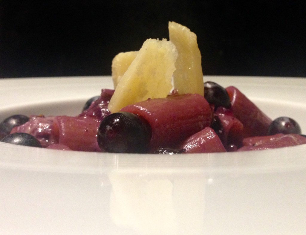 per l’impiattamento ho preservato dei chicci d’uva interi a crudo e iinfine ho guarnito con scaglie di parmigiano.